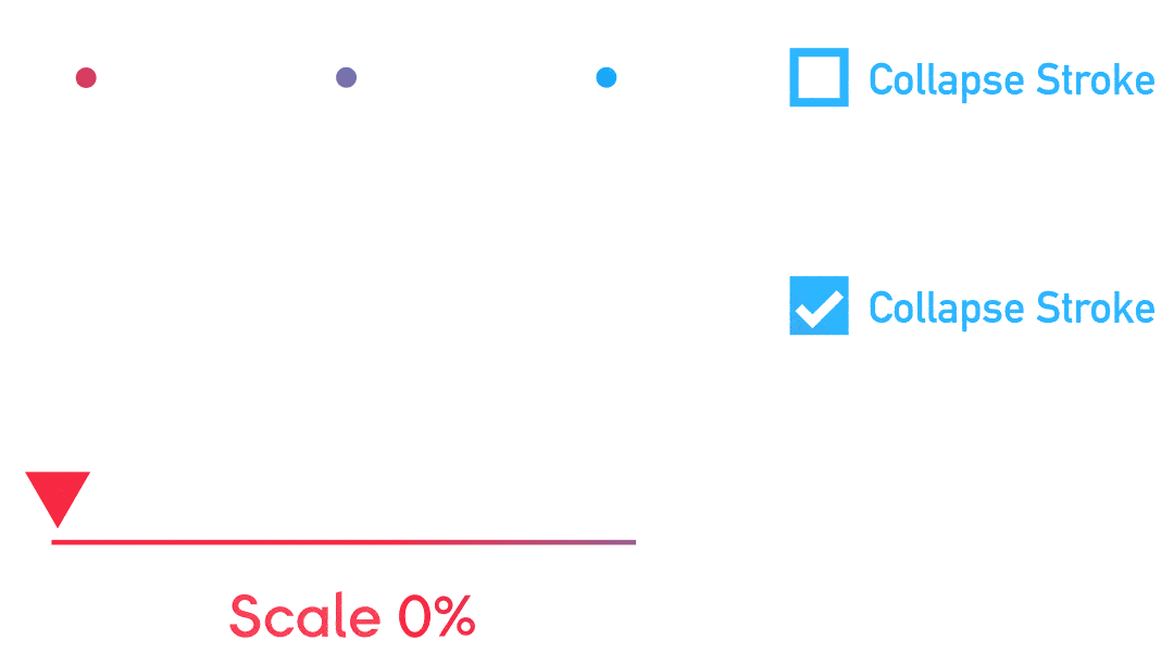Maintaining stroke widths is cool and all but what if you want it to shrink the shape down to nothing? That’s where "Collapse Stroke" can help. When enabled, scaling down shapes will maintain strokes and eventially shrink the stroke down to zero.